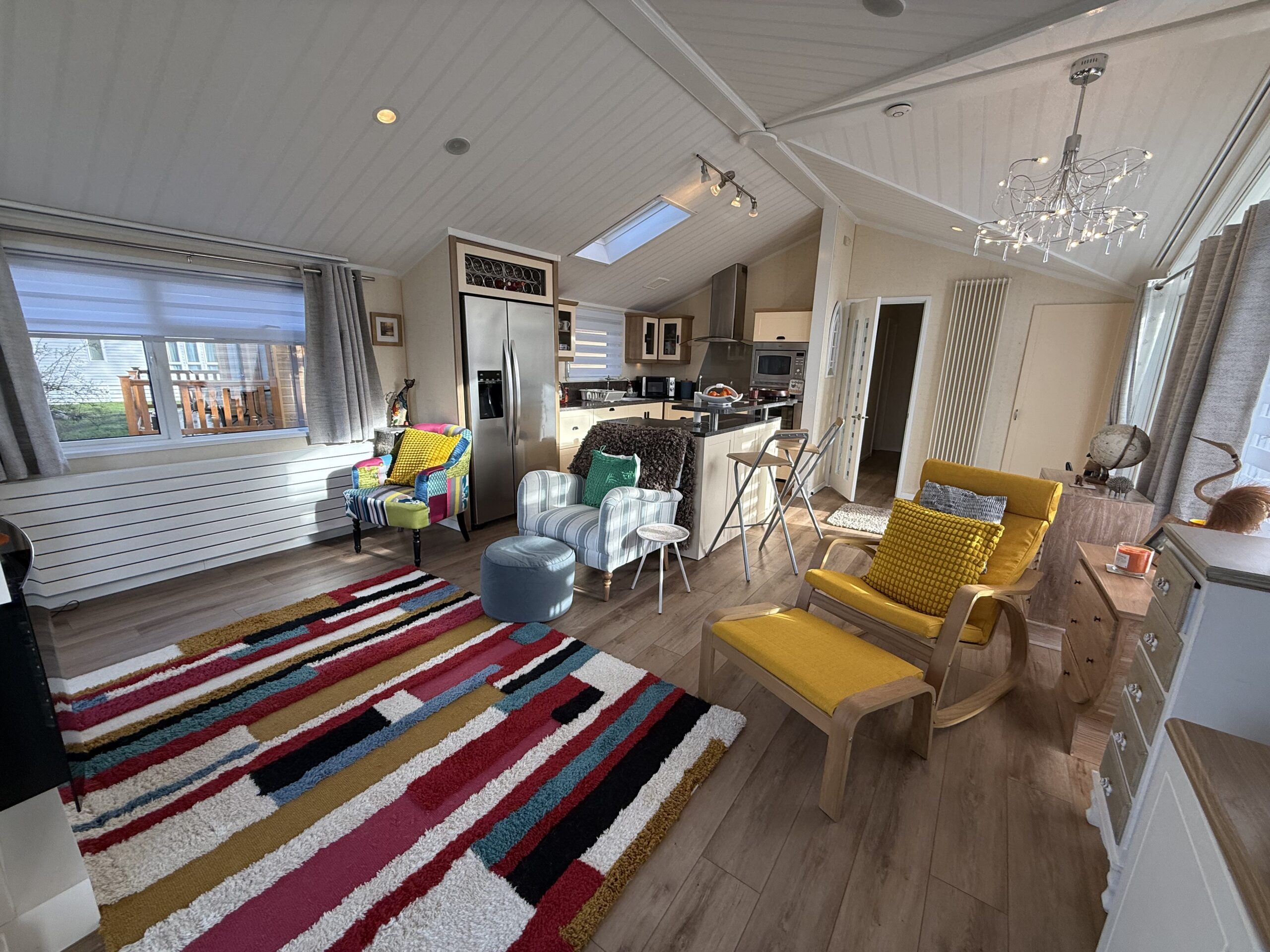 Inside, this beautifully designed lodge has been thoughtfully updated with all the latest amenities. A brand-new boiler ensures warmth and efficiency, while the new dishwasher and washer/dryer add convenience to your stay. The lounge is furnished with brand-new recliner chairs and fresh carpets, creating a comfortable space to unwind.