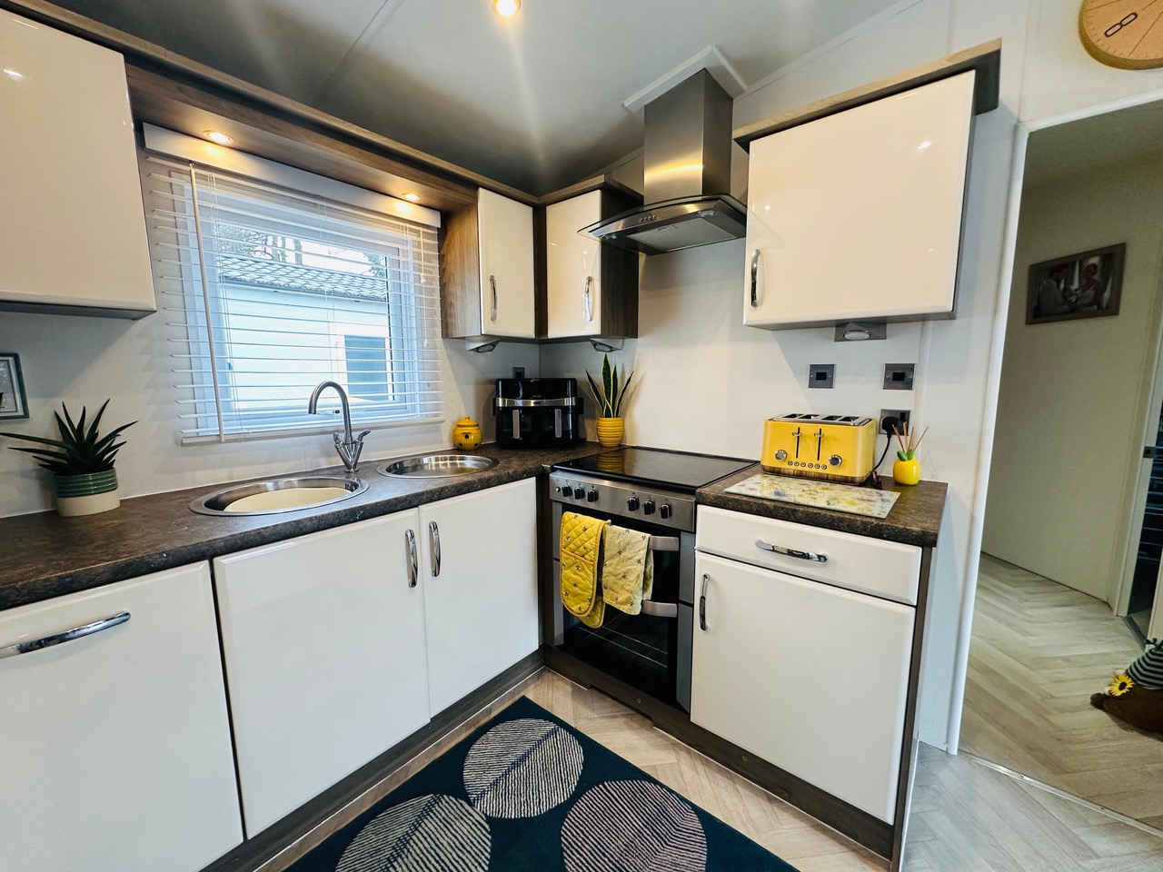 Say Hello to The Ambience, a charming and endearing lodge newly available at Fairway Holiday Park. The interior showcases a sophisticated retro feel, yet is balanced harmoniously with high specification modern amenities. With patio doors opening up to the large decking, from the cosy lounge, you can sit back and relax whilst soaking up the island sun.